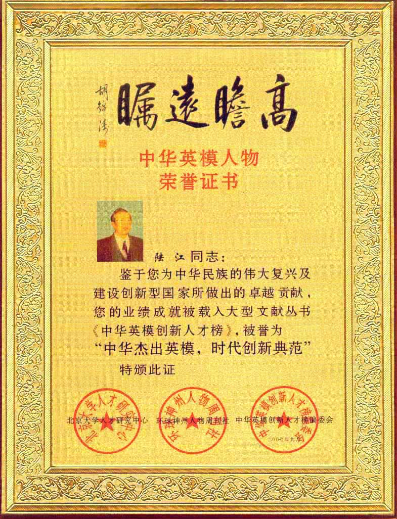 陸江榮獲引領行業發展杰出貢獻人物證書 --------卓康公司榮獲全國質量、服務、信譽AAA級品牌證書